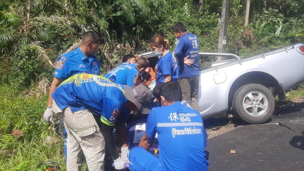 กระบะ Mitsubisghi Tritron ชน Isuzu D-Max รถพังยับ ดับสลด 5 เจ็บสาหัส 7 จนท.เร่งตรวจสอบสาเหตุ