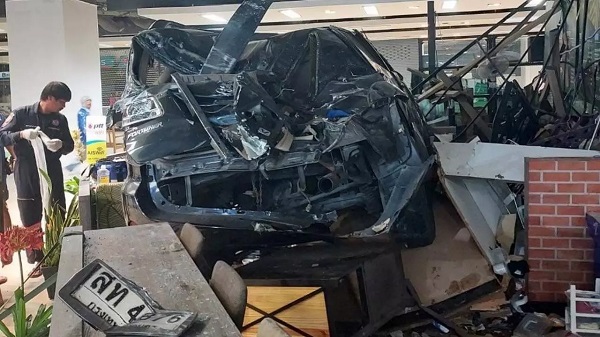 ขณะที่รถยนต์มีปัญหาอยู่แล้วเรื่องการบังคับเลี้ยว เบรกไม่ได้จึงพุ่งชนกระจกของห้างสรรพสินค้าจนทะลุและไปชนราวกั้น จนเหล็กกั้นร่วงลงไปที่ชั้น 1 ซึ่งร้านกาแฟ และตัวรถได้รับความเสียหาย ทำให้ผู้ขับขี่ได้รับบาดเจ็บถูกนำตัวส่ง รพ.แพทย์รังสิต
