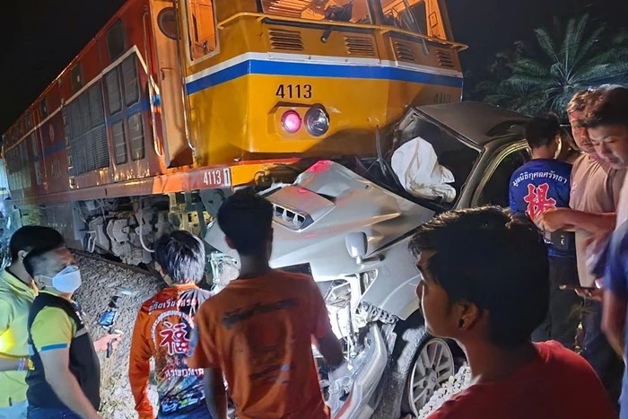 สลด! นายกเทศมนตรีเมืองนาสาร ขับรถ Toyota Fortuner ตัดหน้าขบวนรถไฟ ถูกชนดับคาซากรถ