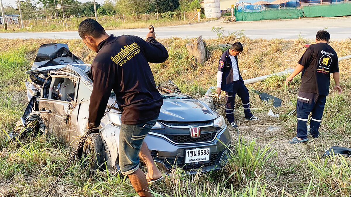 Honda Jazz เสยเสาเกาะกลางดับ 3 เจ็บ 2 ราย