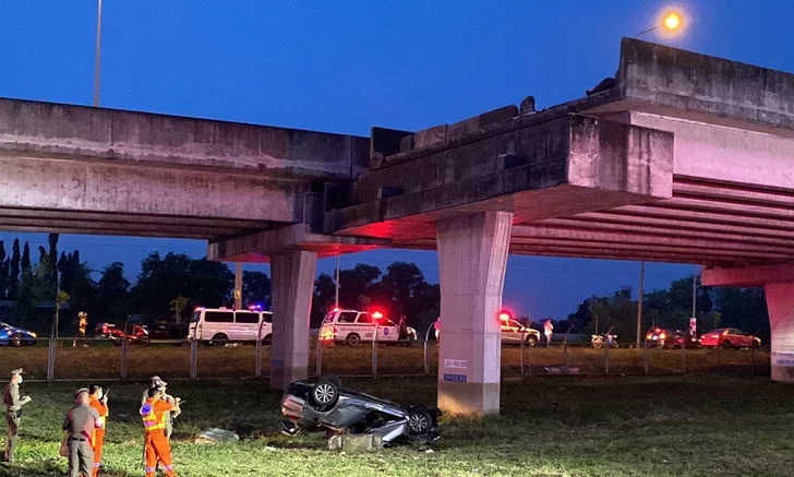 สาวซิ่งเก๋ง Honda City ย้อนศรบนทางด่วนเกือบ 3 กม. ชนแบริเออร์ขวาง ตกมาด้านล่าง ดับคาที่