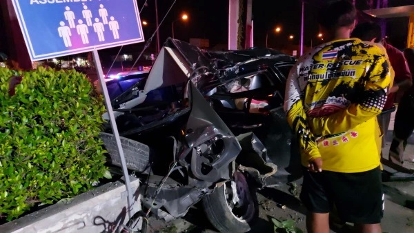 Honda City เสียหลักชนเสาไฟฟ้า ดับ 3 ราย ส่วนคนขับให้การไม่รู้เรื่อง