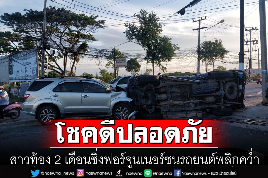 สาวท้อง 2 เดือนซิ่ง Toyota Fortuner ชนรถยนต์ พลิกคว่ำ โชคดีปลอดภัย-เจ็บเล็กน้อย