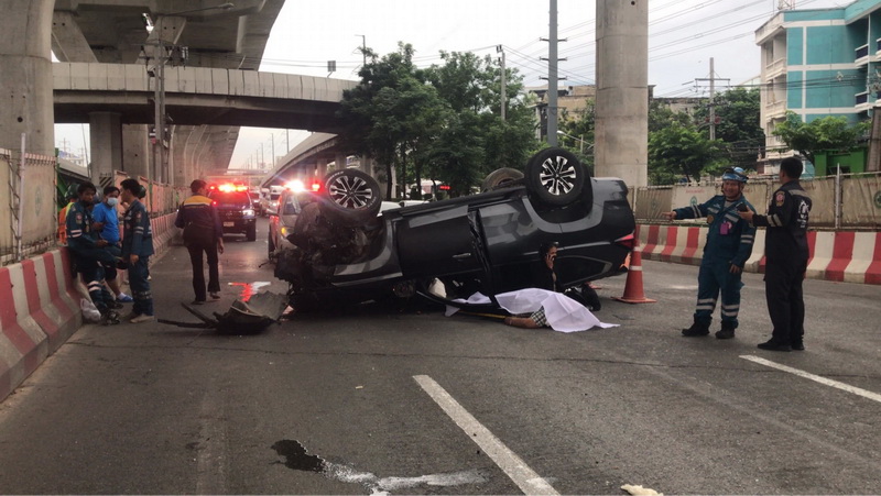 อดีตสจ.ประจวบฯ' ขับ Mitsubishi Pajero ชนแบริเออร์คอนกรีต พลิกคว่ำดับ คาดวูบหลับ